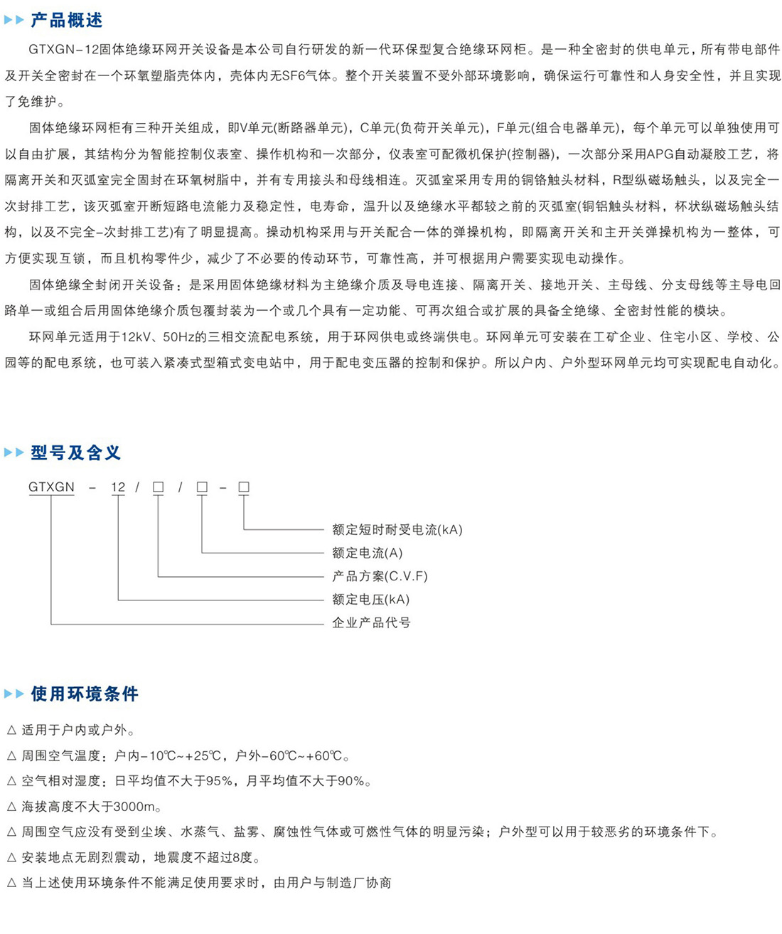产品名称:GTXGN-12固体绝缘环网开关设备