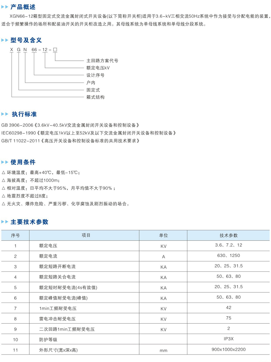 产品名称:XGN66-12箱型固定式金属封闭开关设备