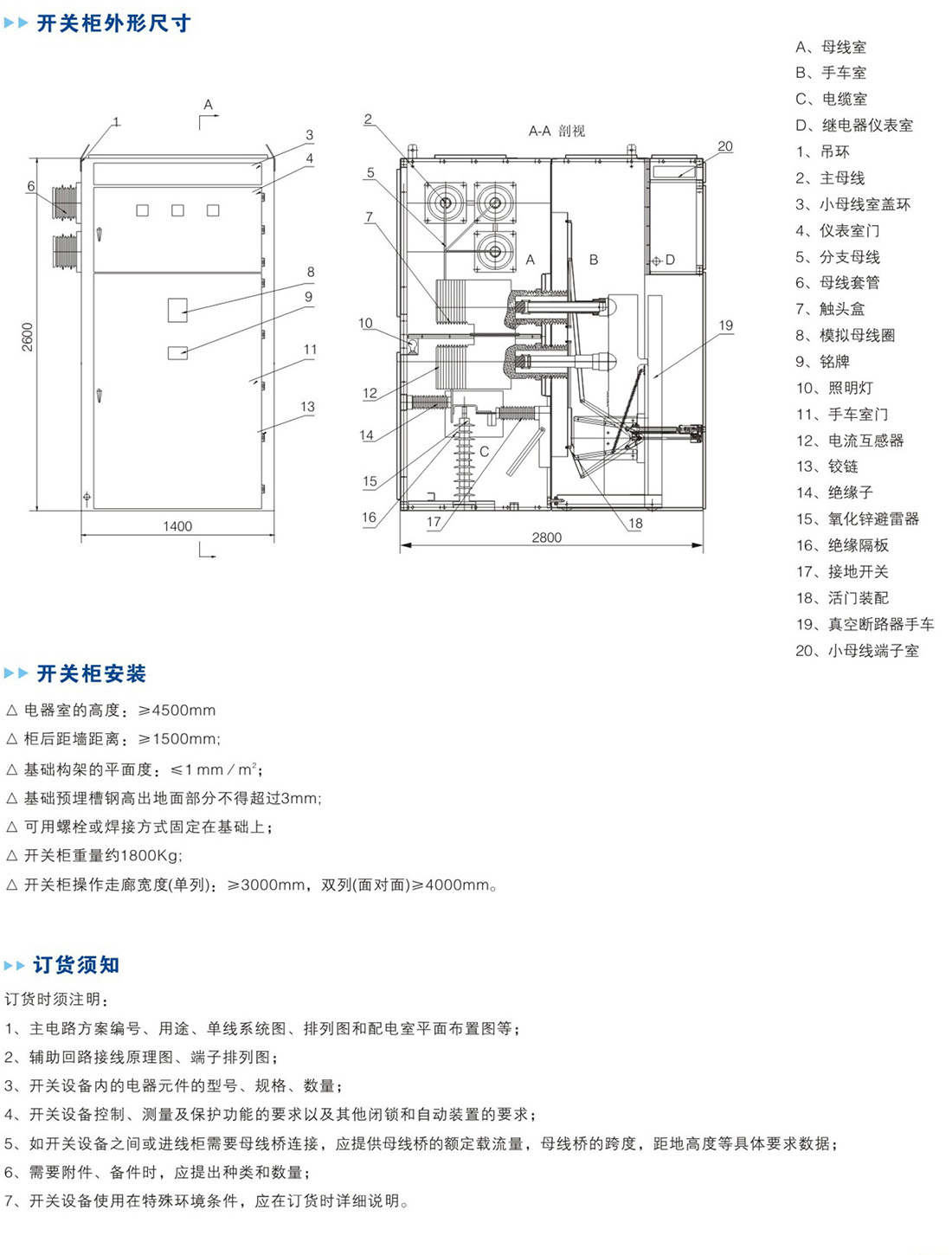 产品名称:KYN61-40.5铠装移开式交流金属封闭开关设备