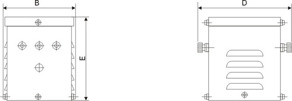 JMB、BJZ、DG、BZ系列变压器是由BK系列变压器和防护外壳构成,外壳两侧有供输入电源和负载接线用的接线柱,并有供接地用的接地螺钉。